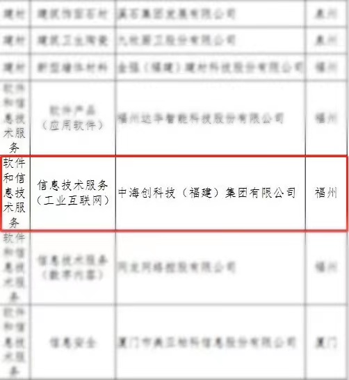 近日,福建省工业和信息化厅发布首批福建省工业现有龙头企业名单,中海创科技集团在软件和信息技术领域成功入选。