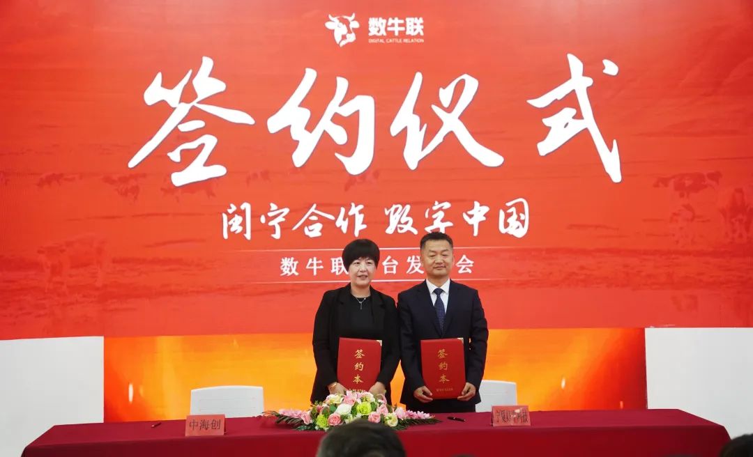数牛联平台启动仪式由中海创集团副总裁慕蓉、宁夏好牛科技总经理石健共同登台开启,同时双方还签订了数牛联平台战略合作协议。